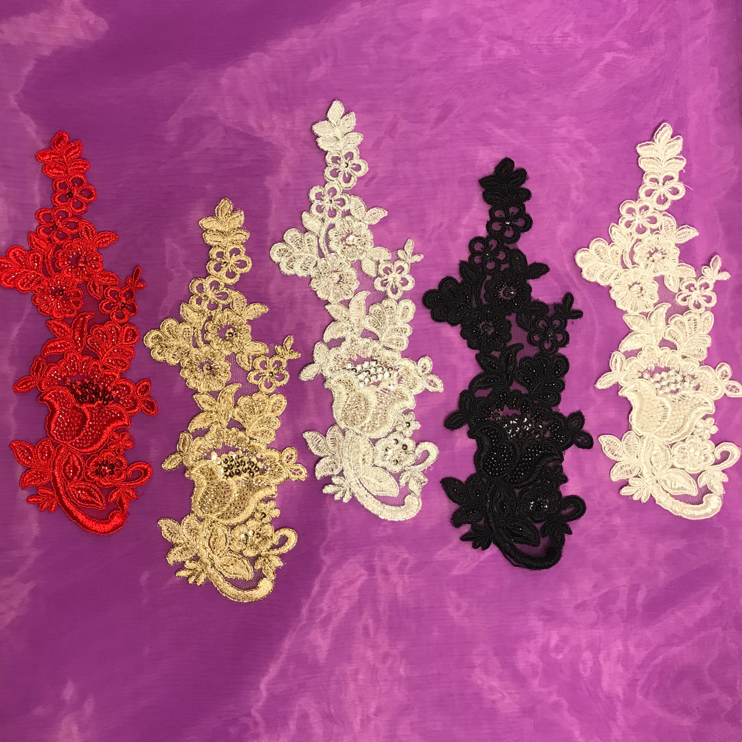 Beaded & Corded Floral Lace Applique Embroidered on 100% Polyester | Lace USA - KZ-25-HB