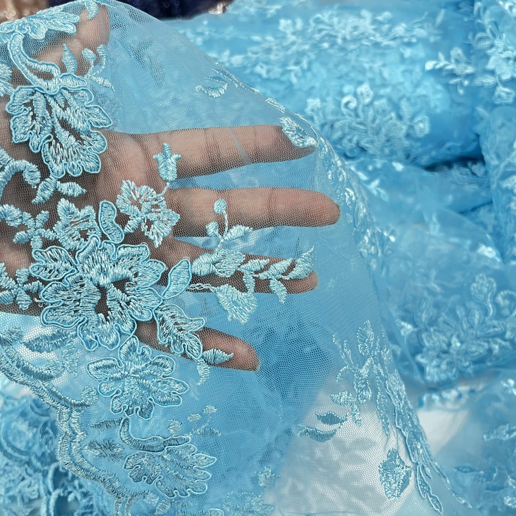 Corded Bridal Lace Fabric Embroidered on 100% Polyester Net Mesh | Lace USA