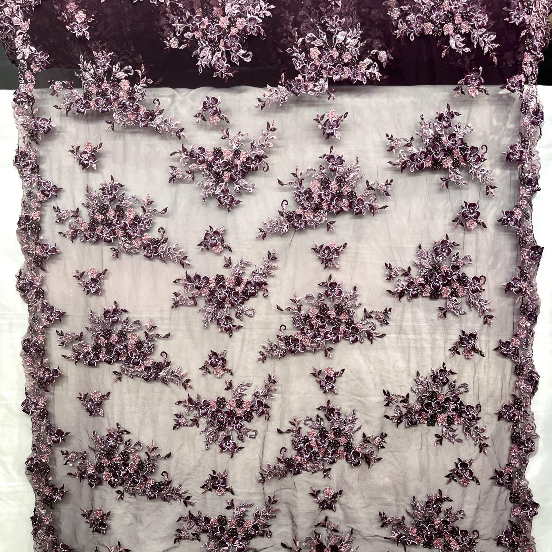 Transform any garment into a couture masterpiece with our 3D Beaded Floral Lace Fabric, featuring intricate floral appliqués, hand-sewn beads, and sparkling rhinestone embellishments. Embroidered on soft, breathable 100% polyester mesh, this fabric is the ultimate choice for luxury fashion and special occasion designs.